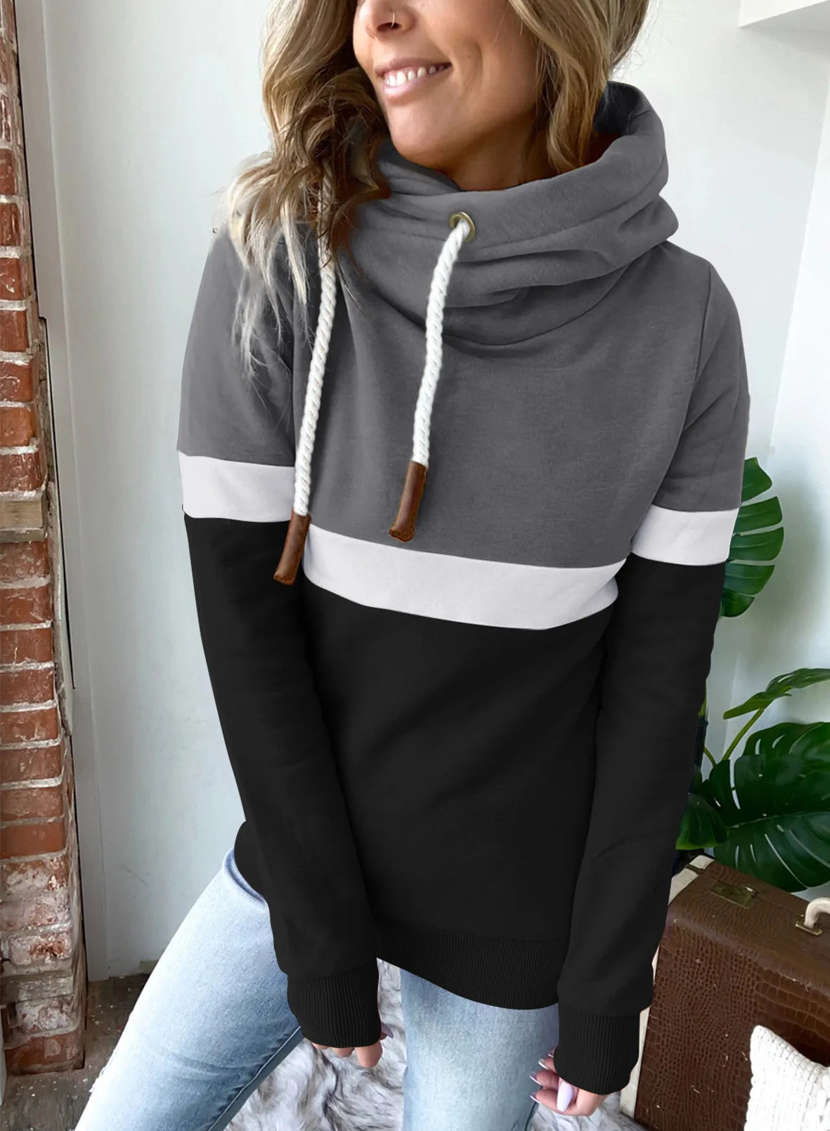 Women's sweatshirt 2024 new autumn and winter solid color stitching casual high collar hooded cross-border sweatshirt for women